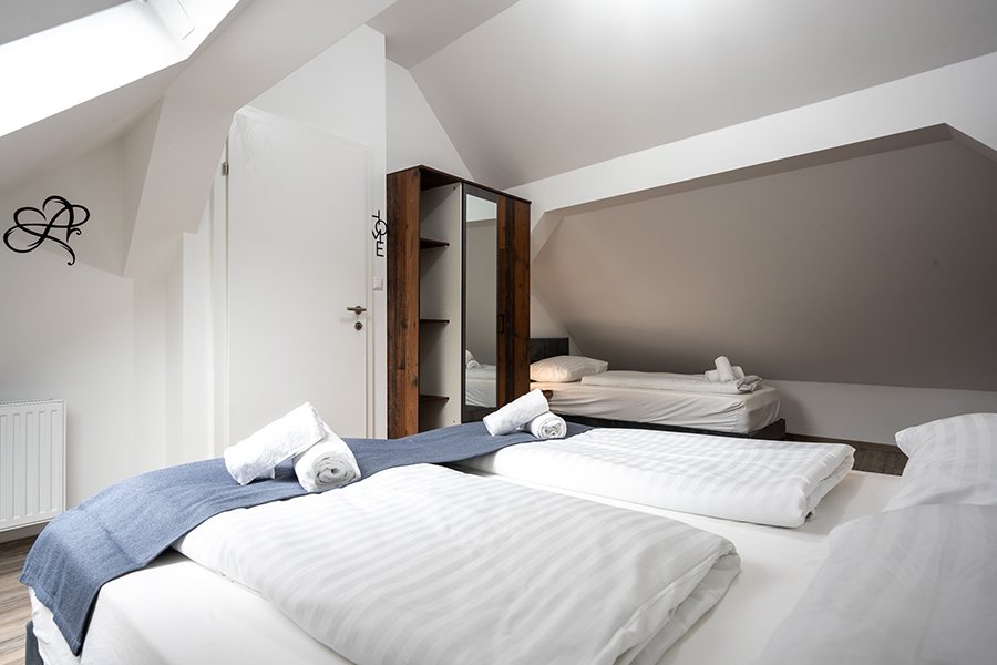 2 Schlafzimmer mit 2 + 3 Einzelbetten